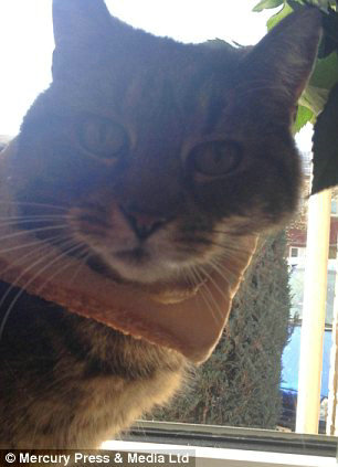 在照片中,面包片穿过猫咪的头部,看起来颇为搞笑可爱。当日,这组图片在脸谱上就引来很多网友的好评,下载率也很高。这位网友还给宠物爱好者们提供了打造“面包猫”的使用教程。宠物主人先要在面包片上切一个洞,这个洞要刚好比猫的头部大一英寸(约2.5厘米),同时,也要适应猫耳朵的大小。但网友也强调千万不能伤害宠物,如果猫咪显得对面包片明显不适应,宠物主人就应立即停止。